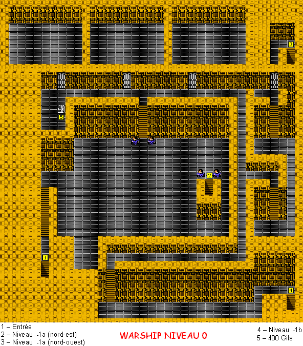 Prenez la porte au centre (celle qui est numérotée 4 sur le plan). Vous trouverez trois coffres : celui de gauche contient une Mithril Axe, celui de droite une Mithril Sword et enfin celui du centre contient une Were Cane. Refilez la Mithril Axe à Gordon et la Were Cane à Maria. |