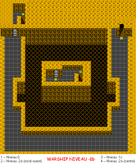 Prenez les escaliers. Vous vous trouverez au centre de la pièce au sol grillagé. Prenez la porte. |