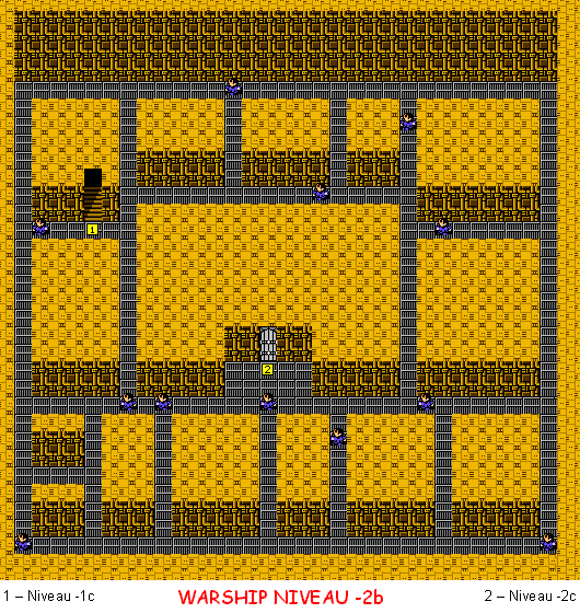 Dans cette pièce, les gardes bloquent le passage à plusieurs endroits. Vous devez vous frayer un chemin (un peu comme dans un labyrinthe) pour rejoindre la porte qui mène à la salle des machines au centre. |